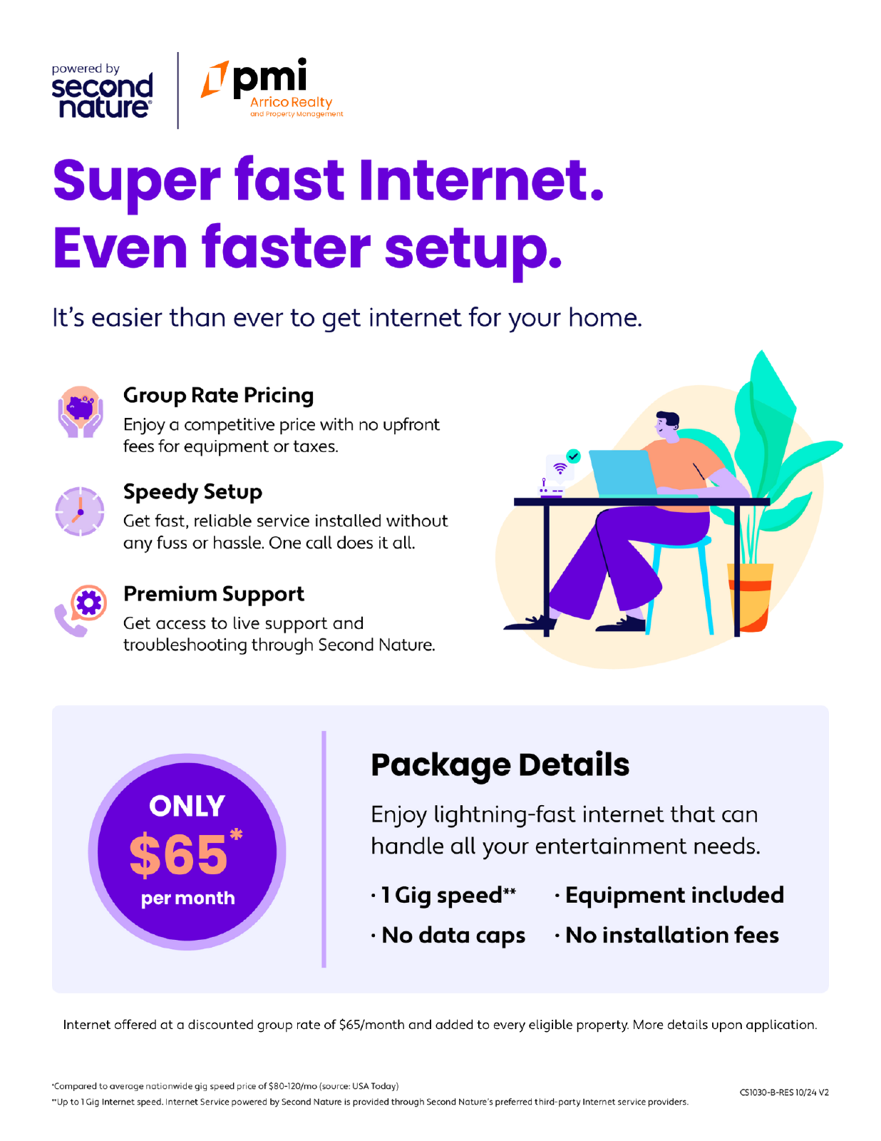 Most PMI Arrico Realty and Property Management homes come with high-speed internet up to 1 Gig at a special group rate, with premium support and setup powered by Second Nature to get you connected fast at move-on. Check your lease to see if your home is included in the program.