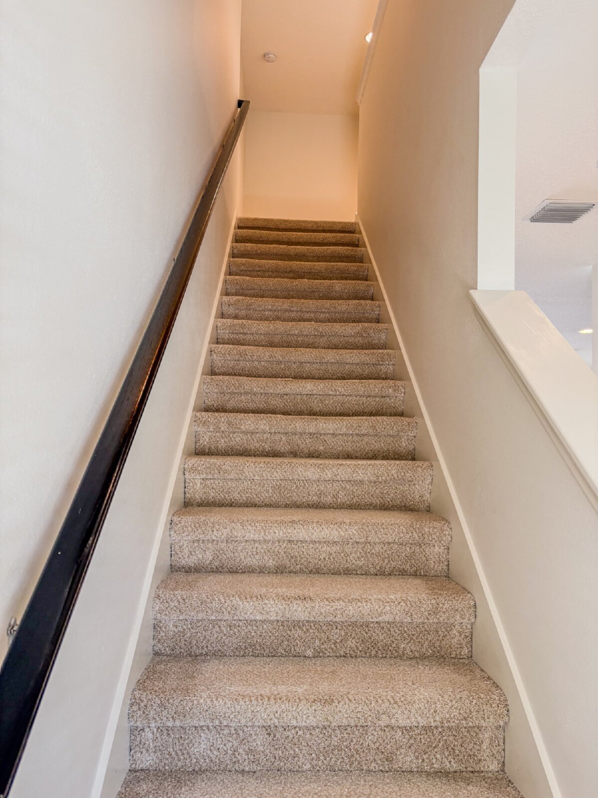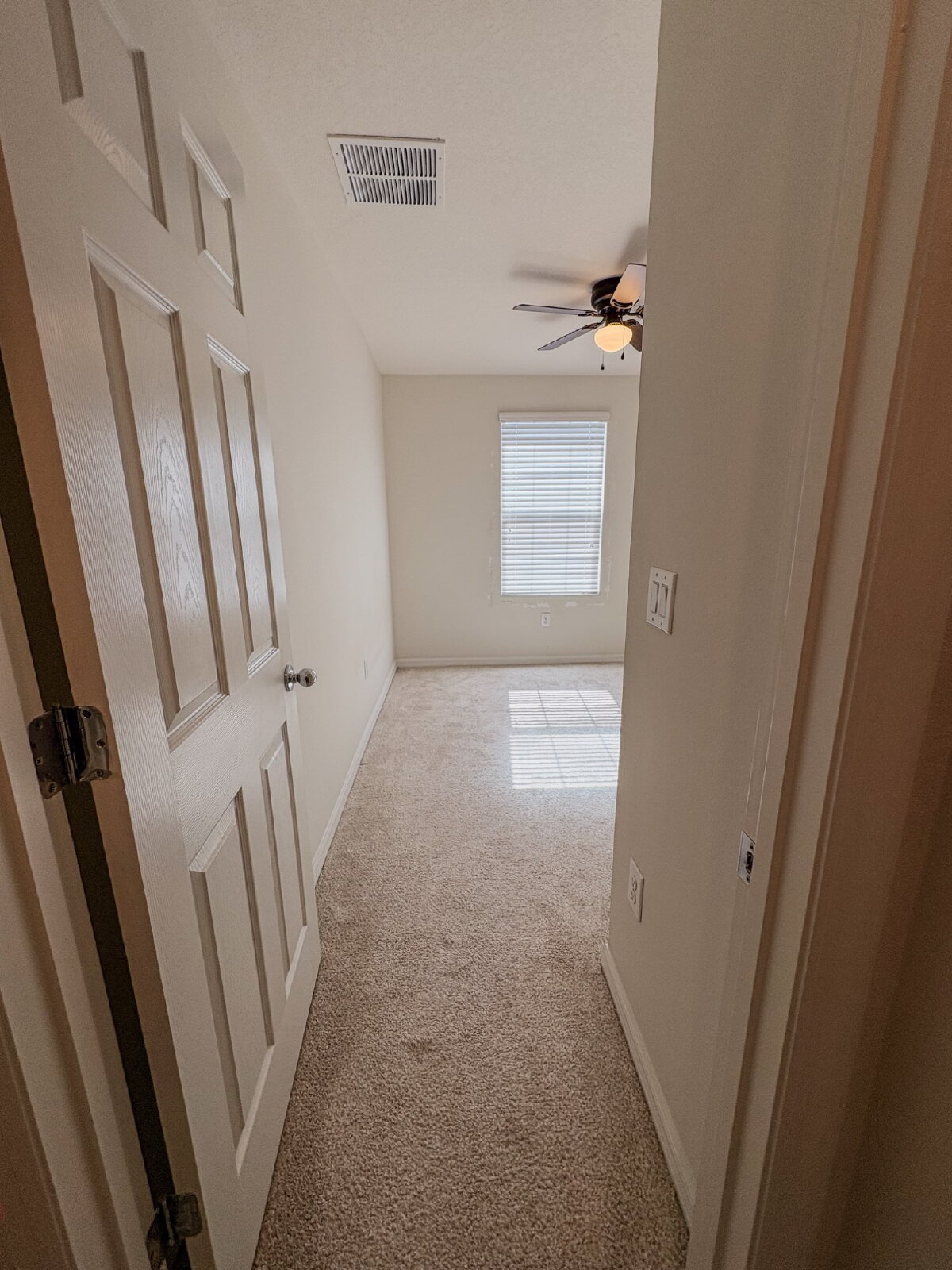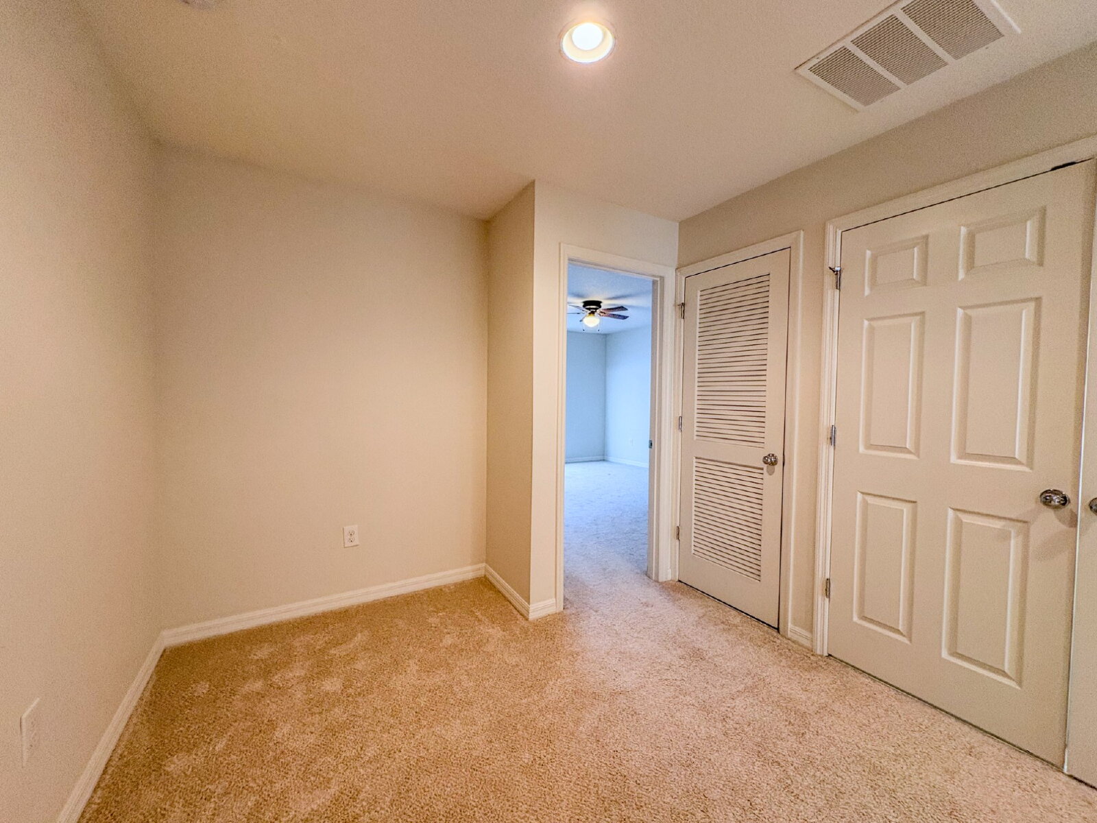 Upstairs, all three bedrooms are thoughtfully positioned for privacy. The primary suite features a spacious walk-in closet and an en-suite bath. Secondary bedrooms are well-sized and share a full bath. Plush carpet upstairs adds warmth and comfort, while recessed lighting and neutral tones throughout make this home move-in ready.