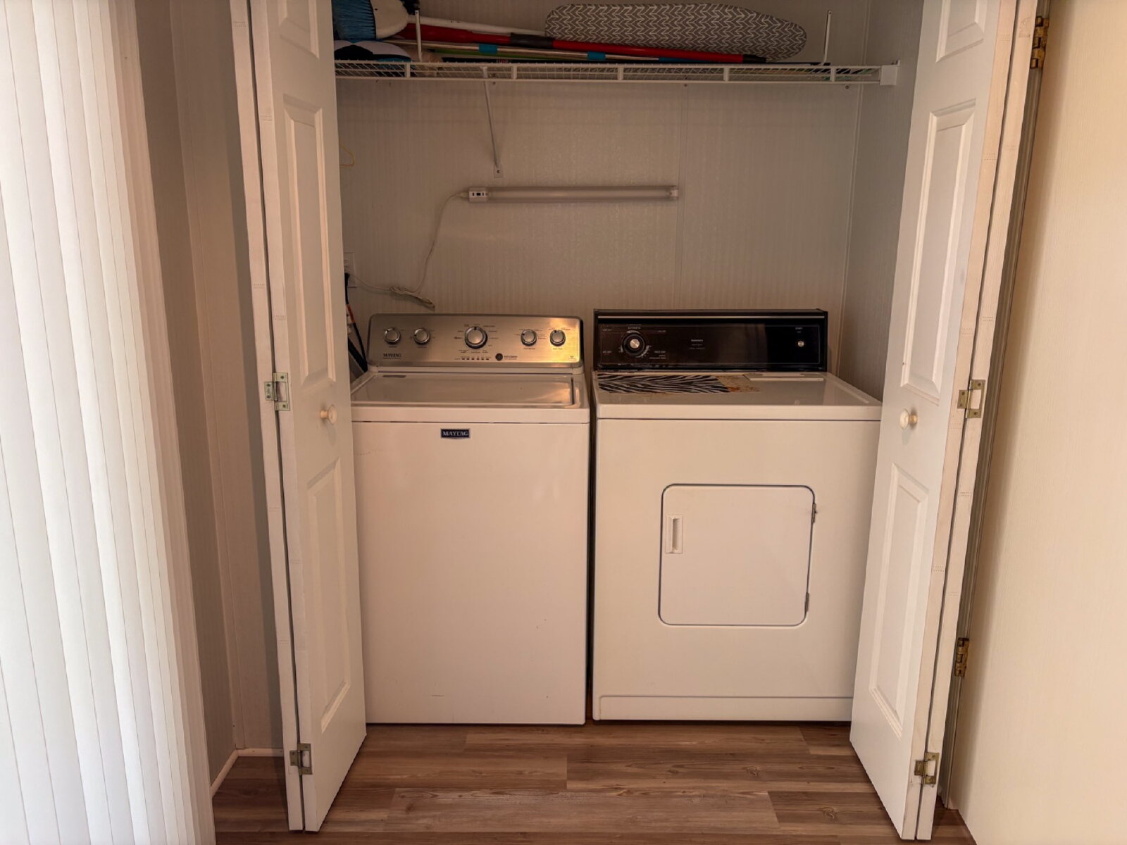The kitchen offers ample cabinet and counter space, along with a cozy breakfast nook filled with natural light—ideal for your morning coffee. The primary suite features generous space, dual closets, and a private bath complete with a garden tub and separate walk-in shower. The second bedroom and full bath provide flexibility for guests or a home office. A washer and dryer are included for your convenience.